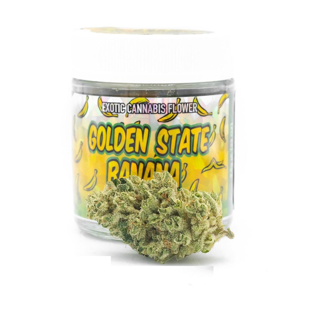 Golden State Banana is a fruity indica cross of Ghost OG and Banana Kush. This semi-sedative strain fills the consumer’s mind with euphoria while wrapping the limbs in a warm, relaxing sensation. The aroma is a mixture of Ghost OG’s pungent, citrus terpenes and Banana Kush’s tropical scents, creating a rich bouquet with bright floral sweetness. Uplifting and relaxing, Golden State Banana’s effects are ideal for unwinding at the end of the day while elevating mood and frontloading creativity.
